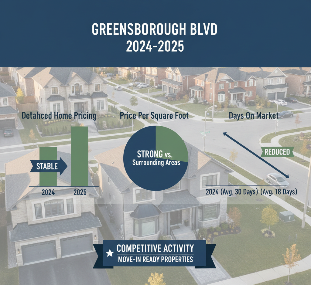 Greensborough Boulevard runs through the center of the Greensborough community in northeast Markham. Surrounded by detached homes, school zones, and nearby transit, this corridor has quietly become one of the more closely watched micro locations in the Markham housing market. From 2024 into 2025, homes around Greensborough Blvd have shown steady demand, consistent resale activity, and reliable price stability, attracting both long term homeowners and careful investors.
