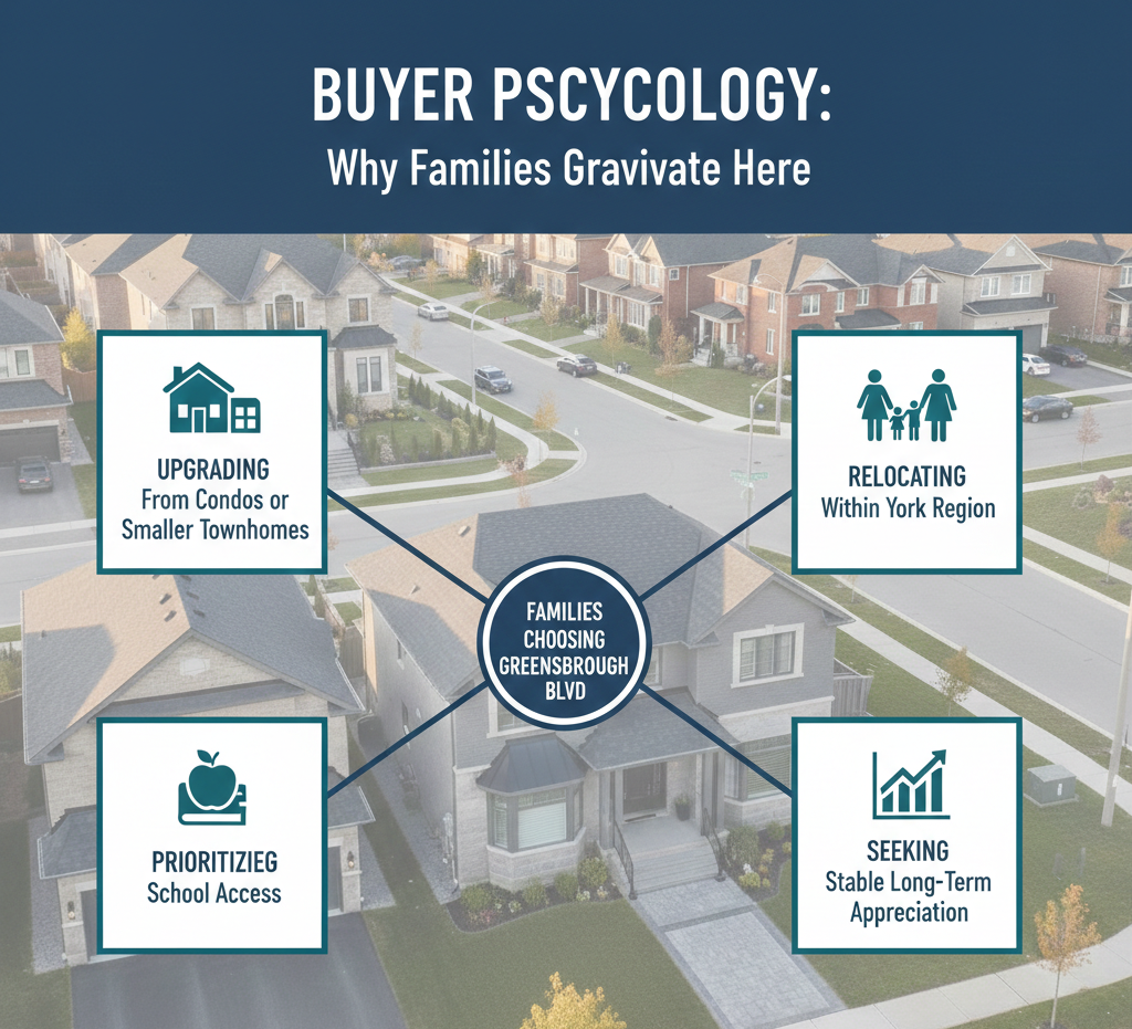 Buyers often compare this pocket with Unionville real estate. While Unionville may carry higher prestige pricing, Greensborough Blvd offers a practical balance of affordability, layout efficiency, and resale stability.